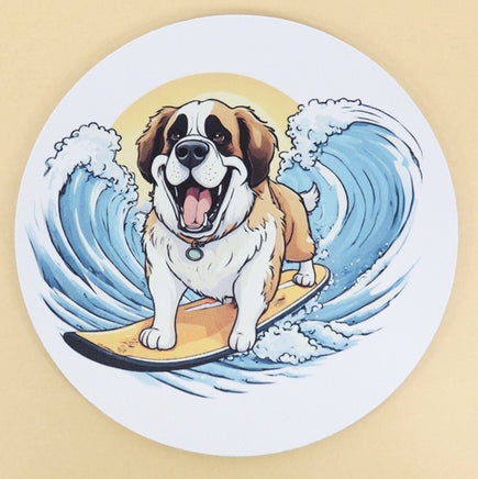 Sully The Surfing Saint Bernard Round Mouse Pad